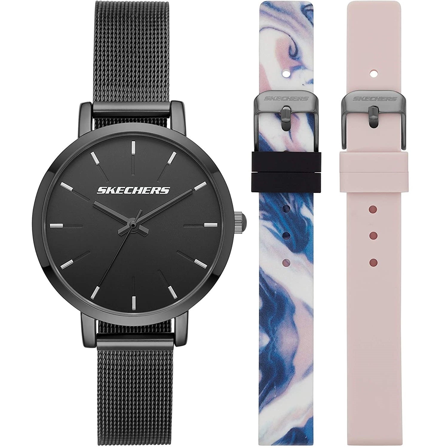 - Skechers SR9028 Women's Quartz Black Mesh Bracelet Watch with 2 FREE Silicone Strap Gift Set