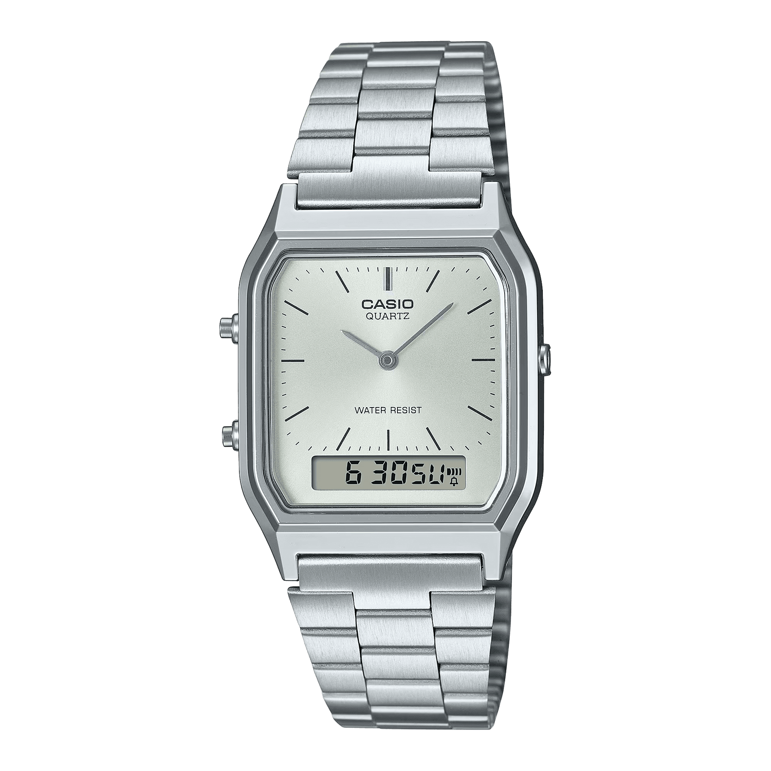 The angular case frames a dial updated in the latest color trends. Retro simplicity meets modern functionality in an analog watch with small digital window for the info you need at your fingertips. A versatile, elegant design to complement every occasion, from dressy formal events to casual outings.