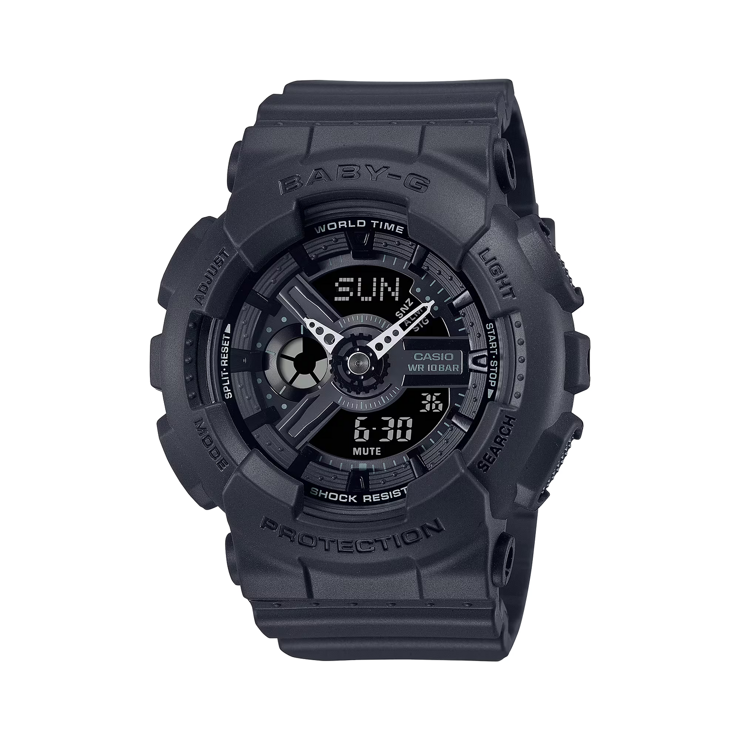A standout in street fashion, this BABY-G delivers function, as well. Enjoy handy, reliable functions like LED lighting and stopwatch, as well as the shock and water resistance you count on.