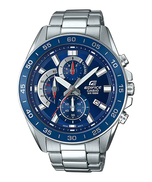 A large standard EDIFICE chronograph. Use of an extra-thick inset dial creates a powerful, dynamic design.