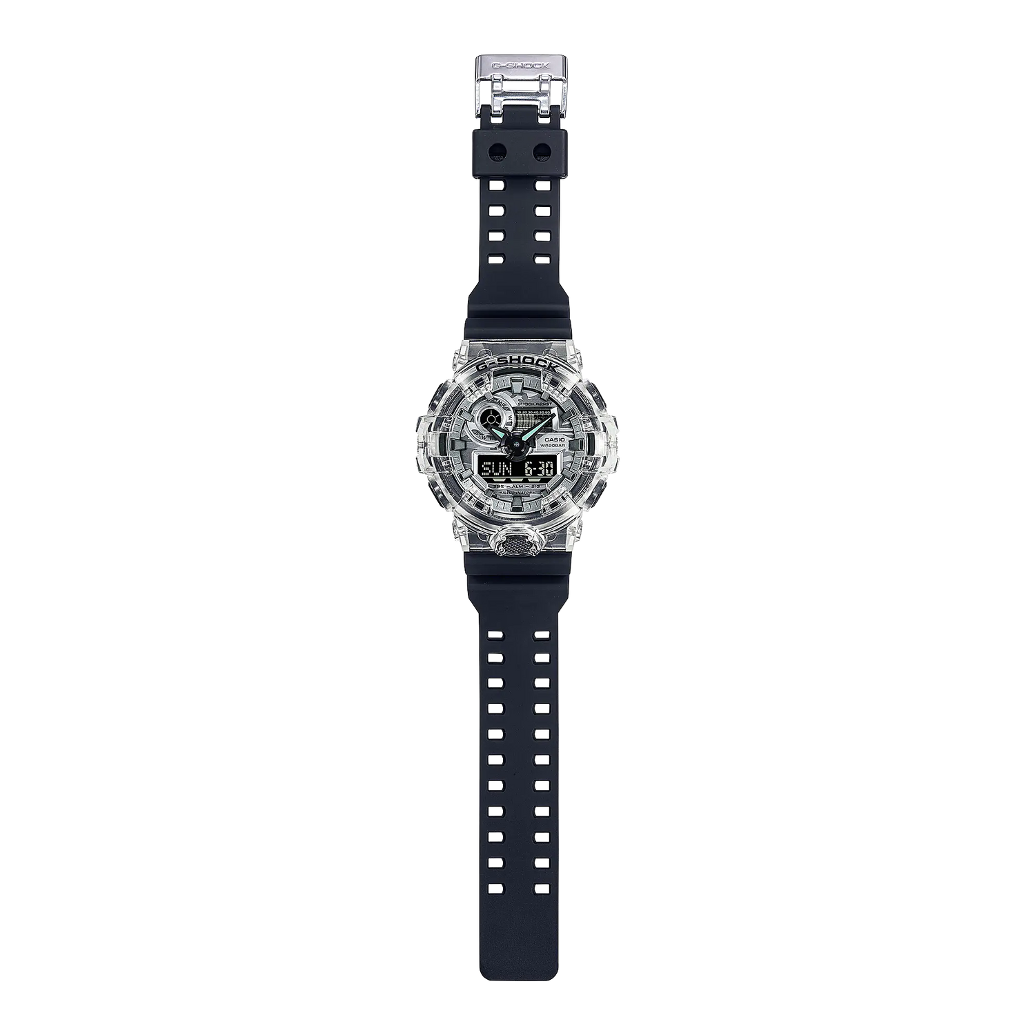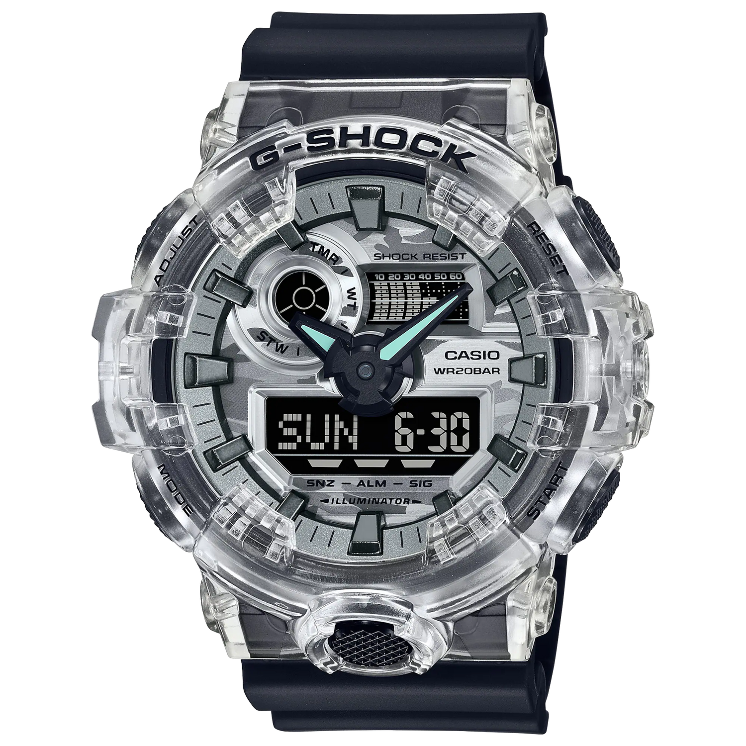 Go stealth in a G-SHOCK with camouflage dial and translucent bezel.