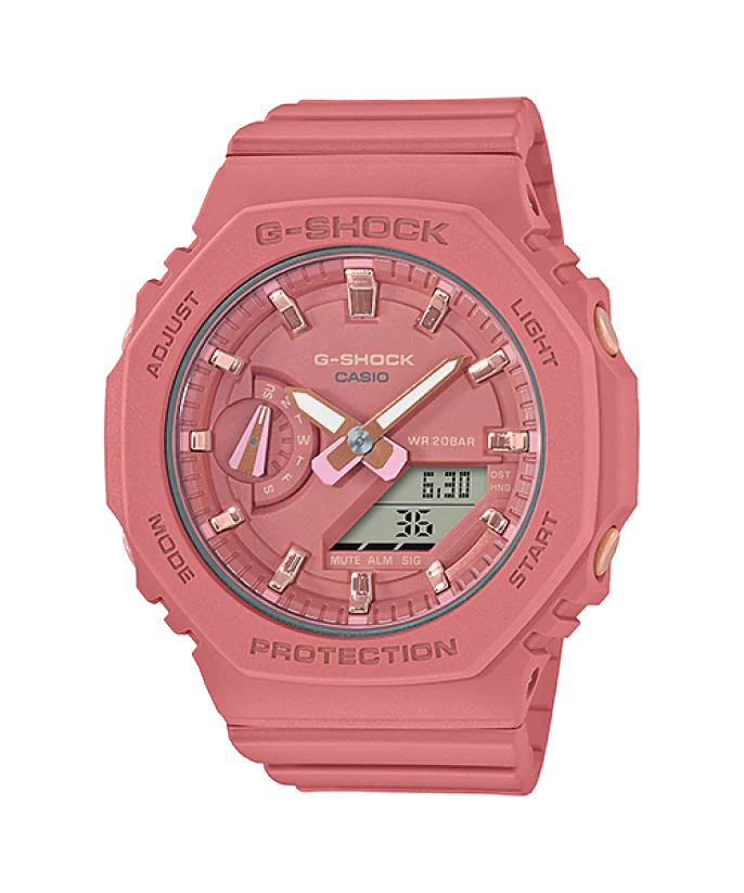 This series downsizes the GA-2100 to create a simple and slim design. The octagonal bezel, flat face, simple bar hour markers, and carbon core guard structure that are distinctive features of the GA-2100 are now available in a compact configuration.