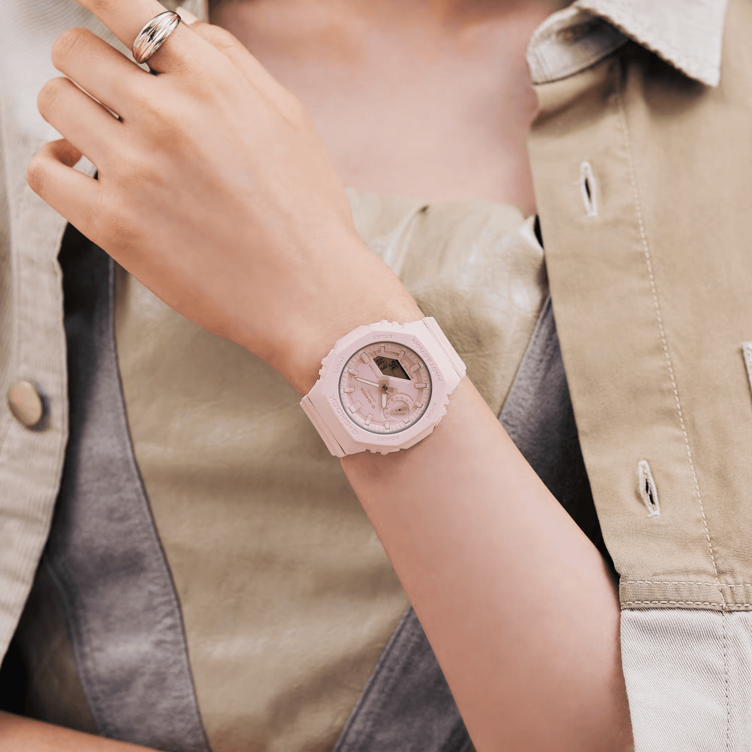 Simplify your life with the popular analog-digital combination GMA-S2100 in your choice of smoky, monochromatic colors.