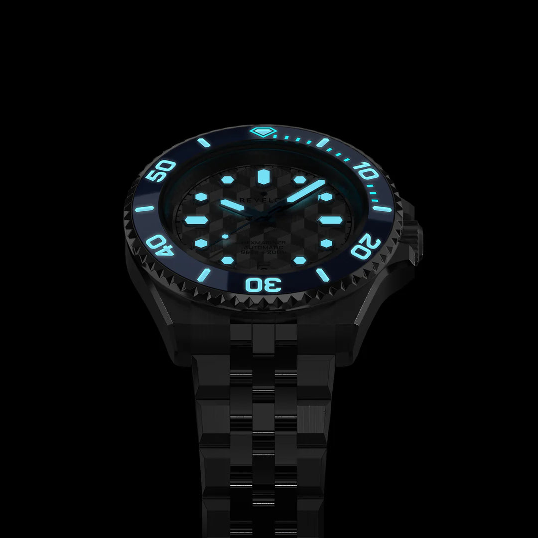 - Uni-directional ceramic bezel with lume