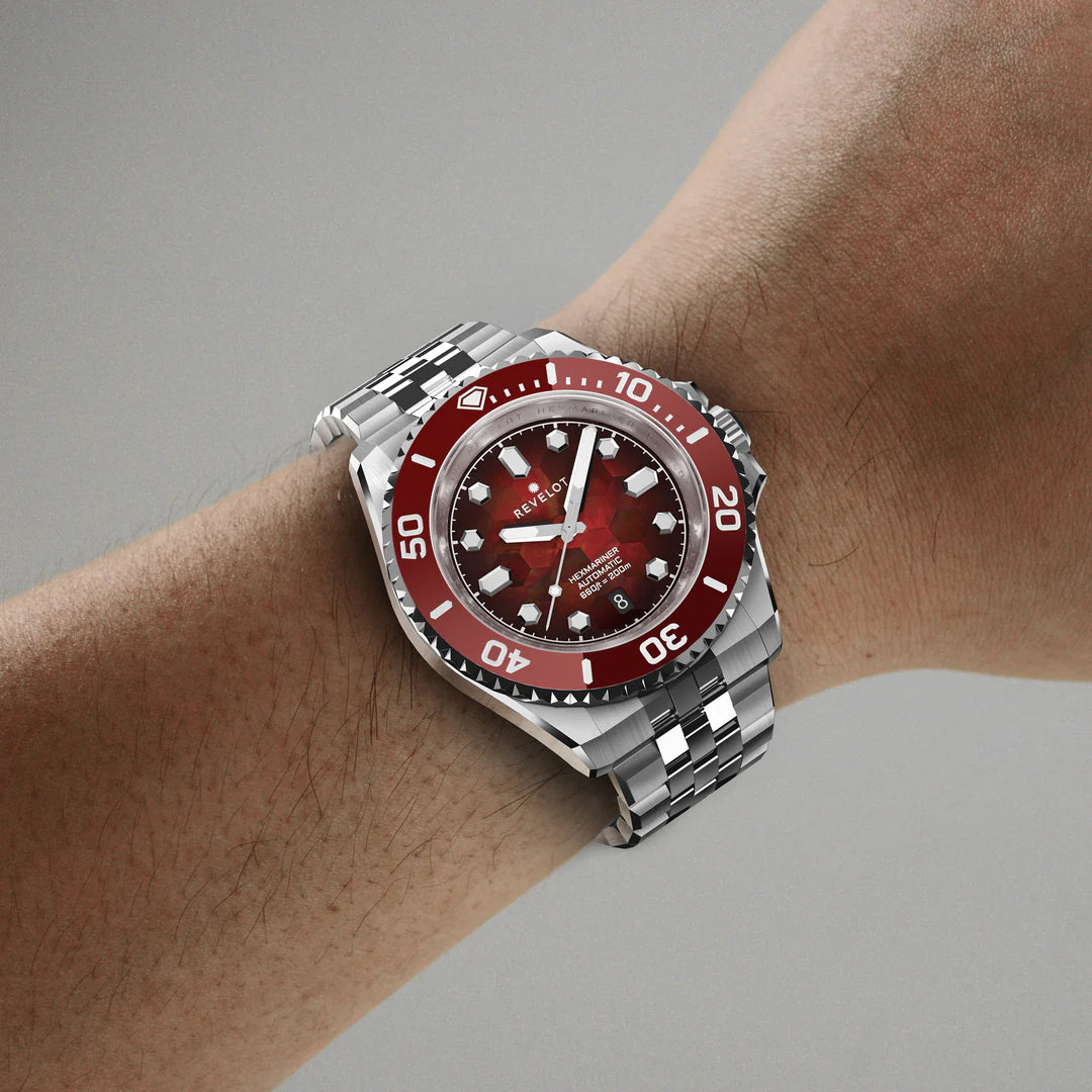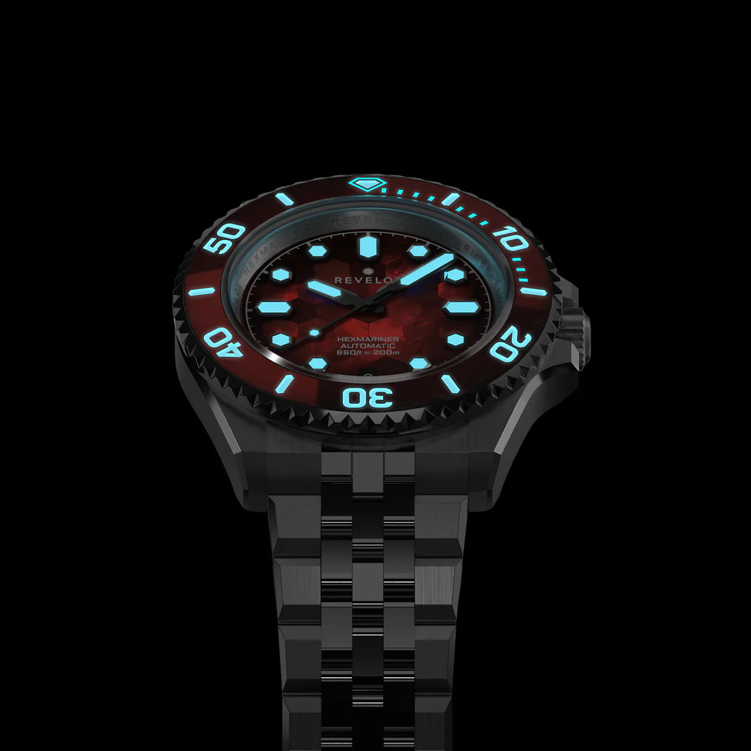 - Uni-directional ceramic bezel with lume