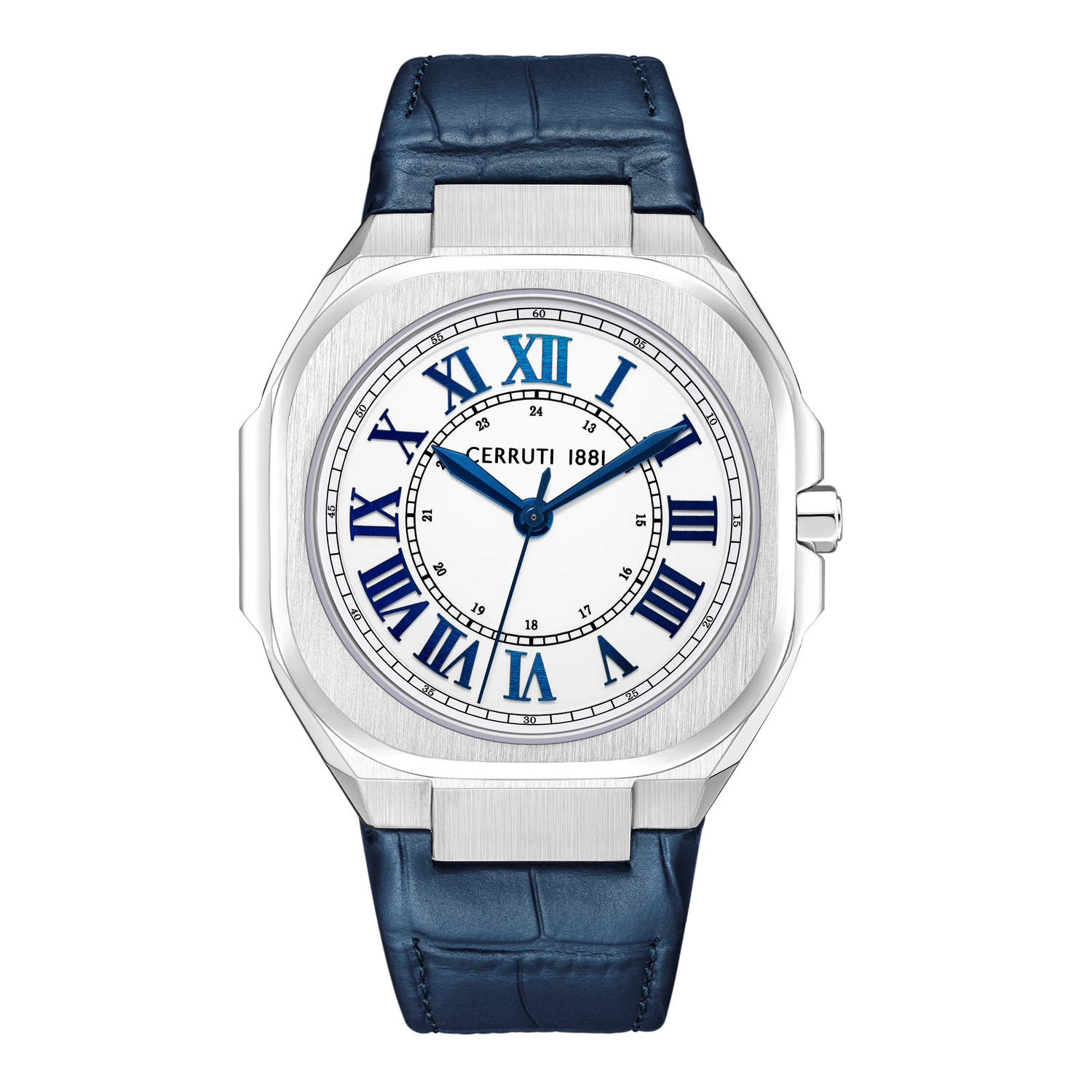 The classic allure of the minimalist watch, Leadri, is enhanced by the modest squircle case housing a perfectly circular white enamel dial. The classic design adds an interesting flair, while the ion-plated blue Roman numeral hour markers impart a classy and elegant grace to the watch. As a bonus, the watch boasts a distinctive croco blue premium leather strap and water resistance up to 10 ATM.