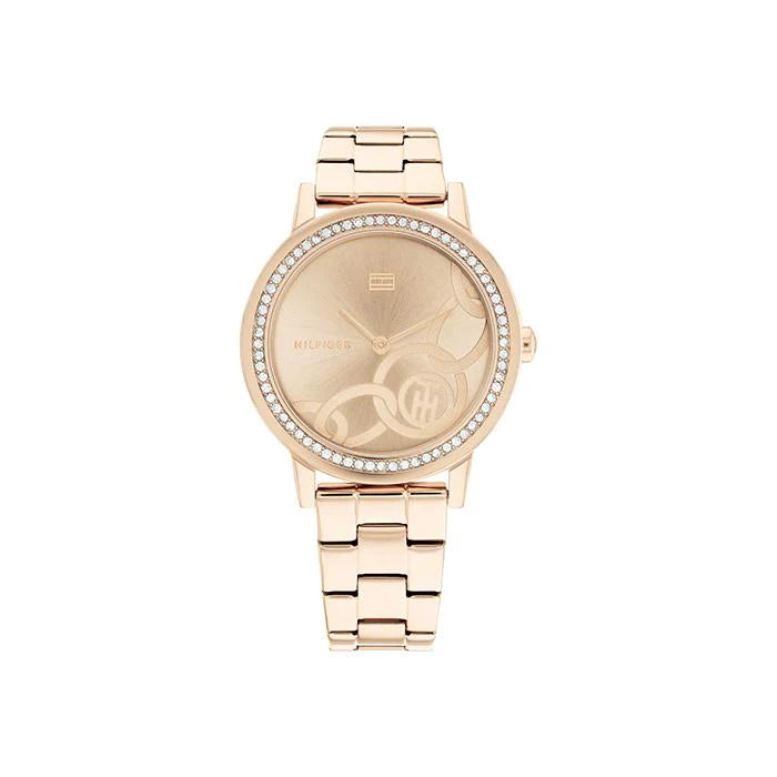 CASE MATERIAL:Ionic Plated Carnation Gold Steel With Crystal