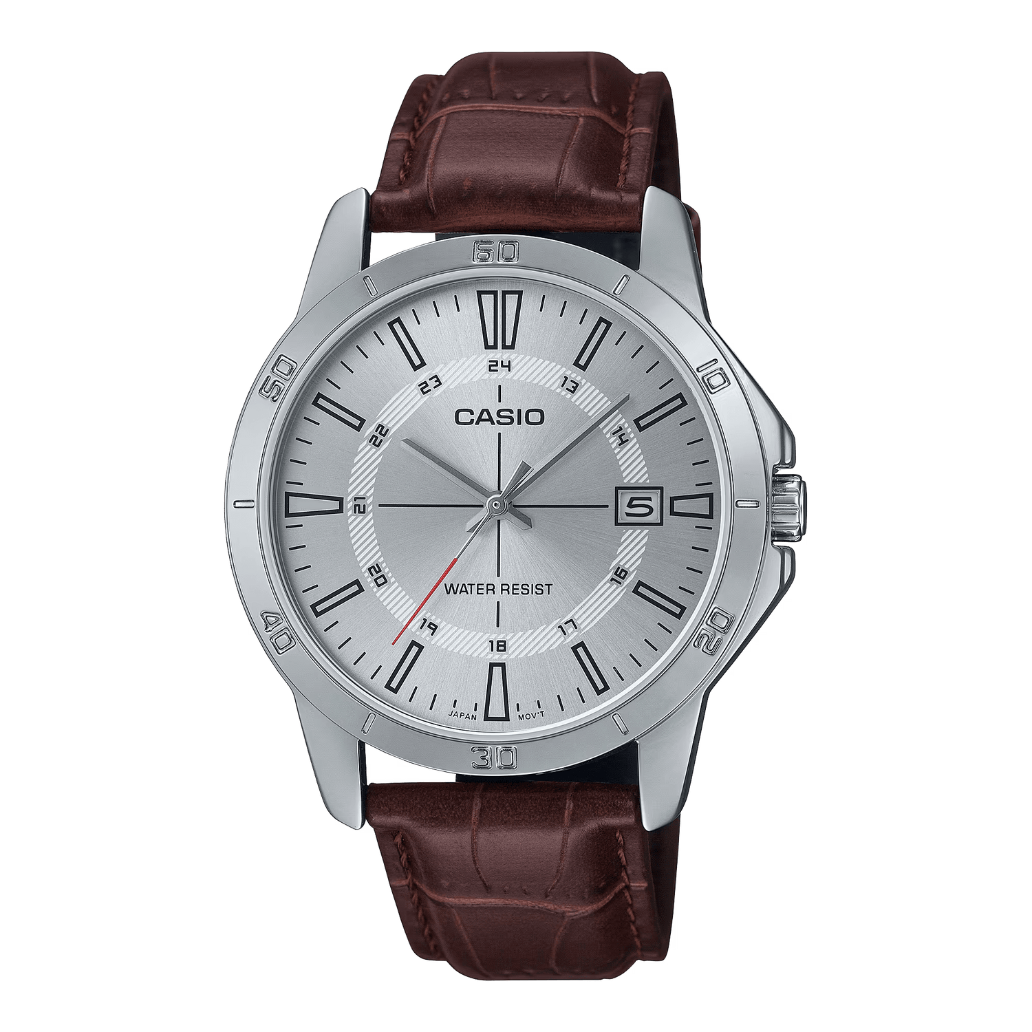 Simple and stylish bar index marks and handy date display at the 3 o’clock position deliver stylish design and functional convenience. Water resistance for daily use frees you from worry when washing up or out in the rain.