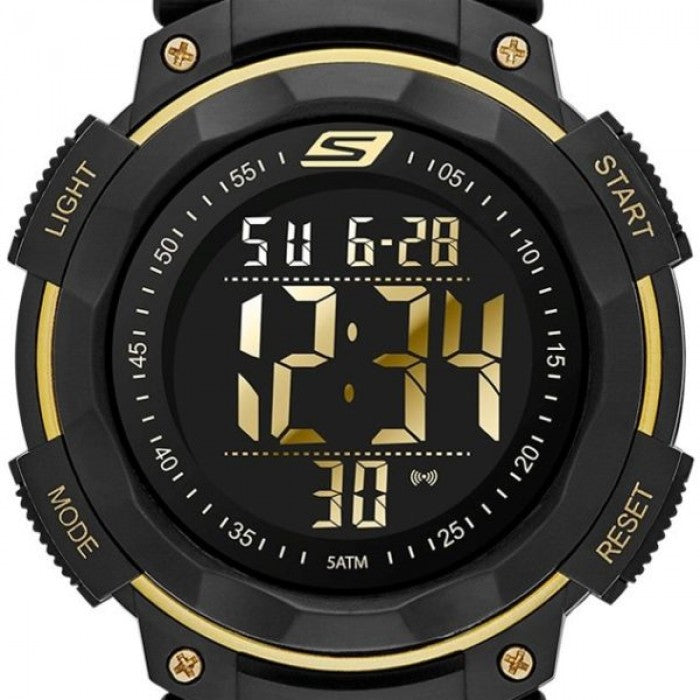 - Skechers SR1019 Men's Ruhland Digital Black And Gold Resin Strap Watch