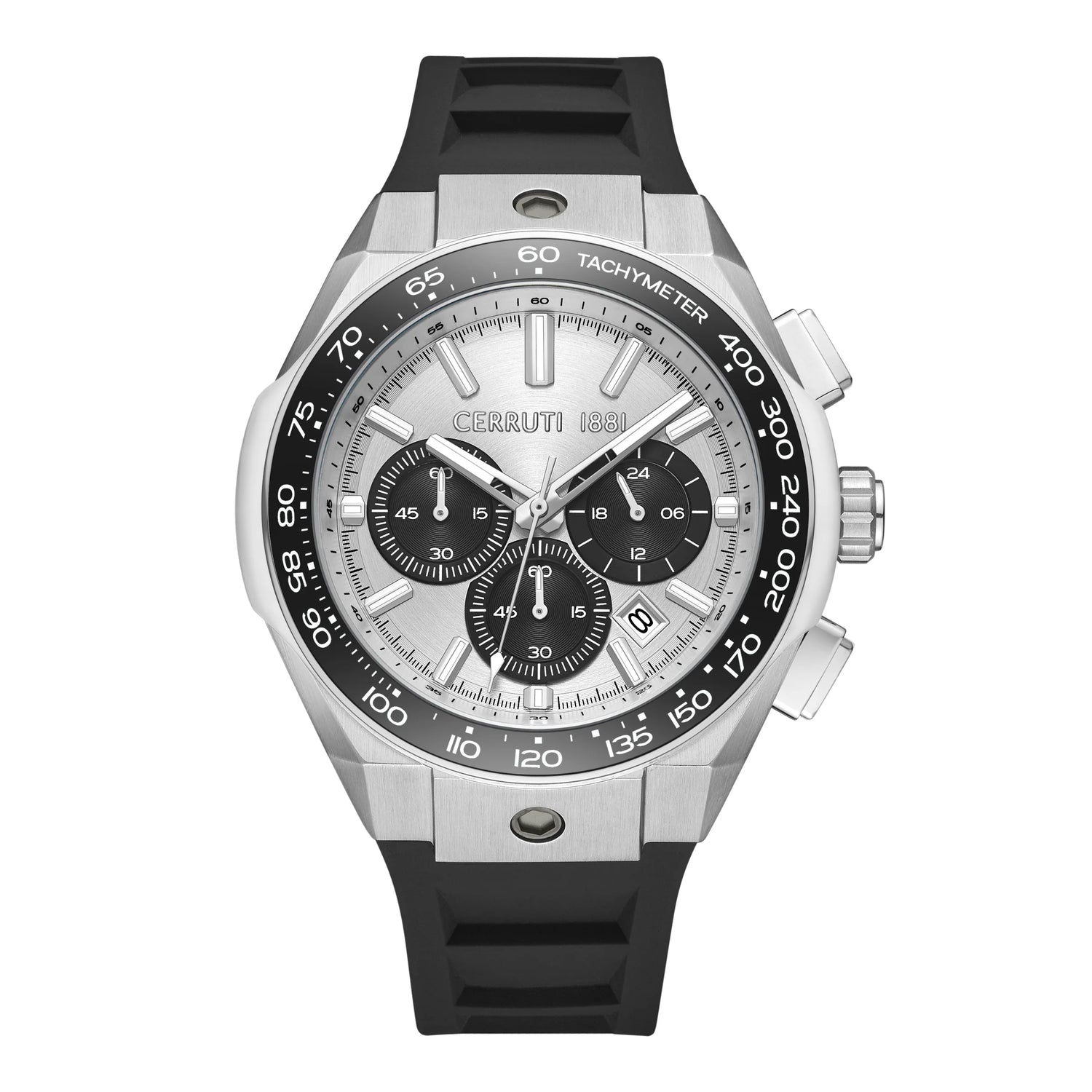 Ruscello stands out with its dynamic design and contemporary allure. This watch flaunts impressive details, featuring a striking silver dial accented by a black ceramic topring that elevates your style, making a bold statement. Complete with characteristic elements and a chronograph function, Ruscello exudes distinctive confidence with the black sturdy silicone strap - making it the ideal companion from the boardroom to the golf course.