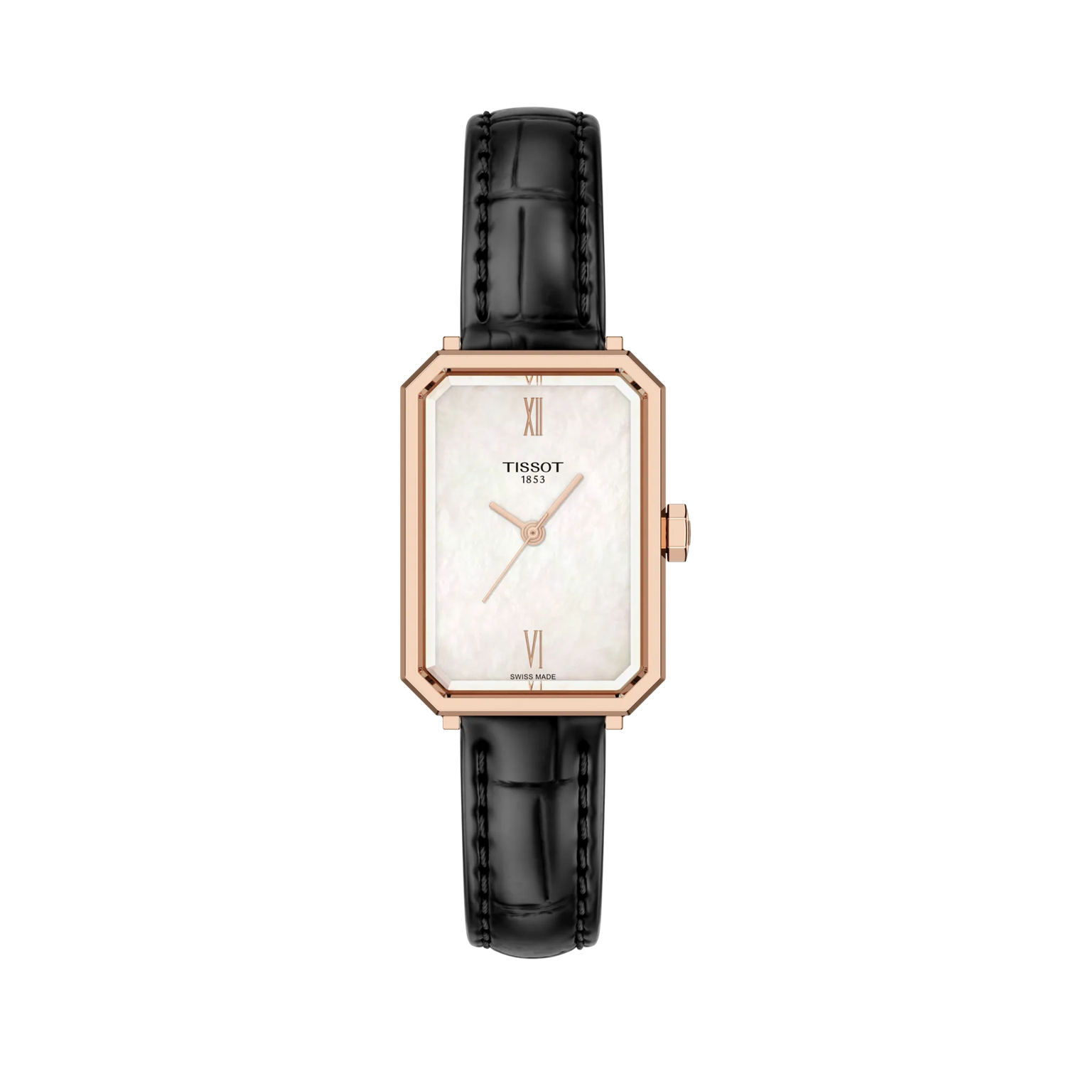 This rectangular watch with a mother-of-pearl dial will elevate your look and offer you confidence and comfort.